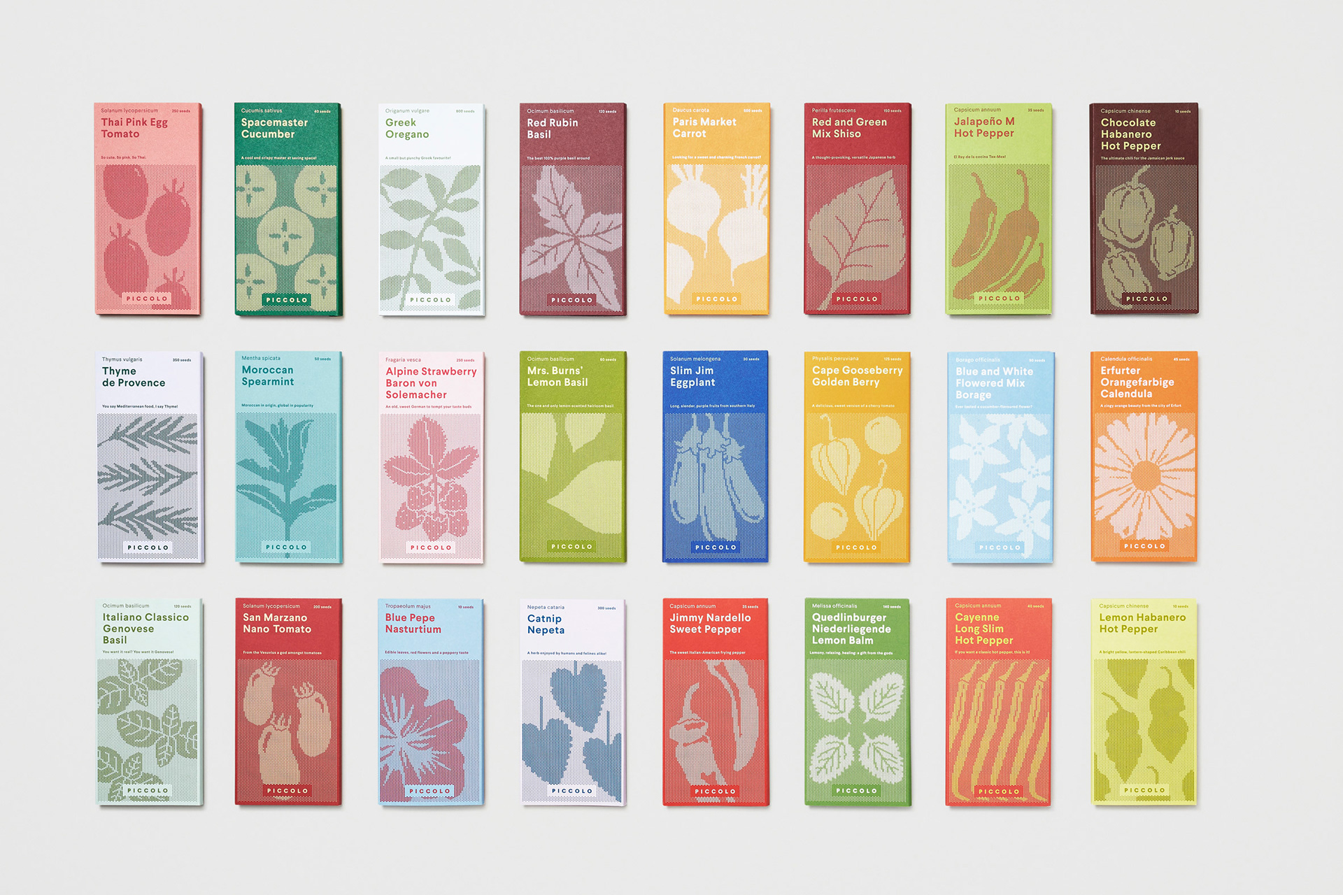 We designed a set of intriguing colourful seed packages using our distinctively dotty illustrative system, contemporary sans serif typography and infographics, the overall effect conveying Piccolo’s inviting urban modernity.